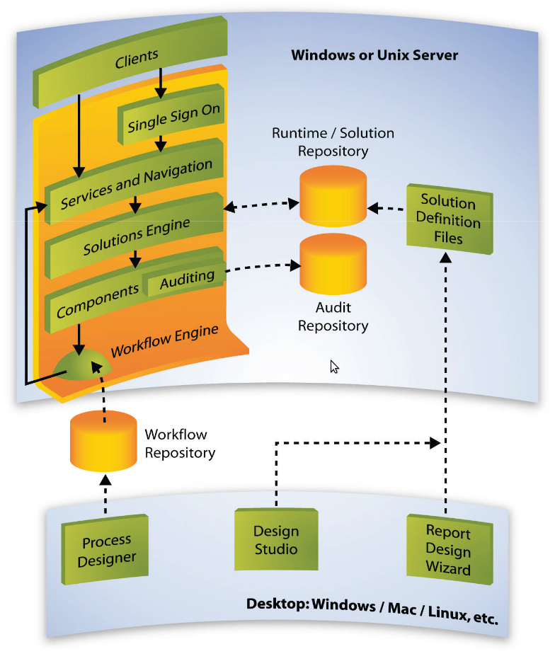 1. Pentaho Server: stumenti che girano in un application server j2ee-compliant e svolgono le principali funzioni di BI