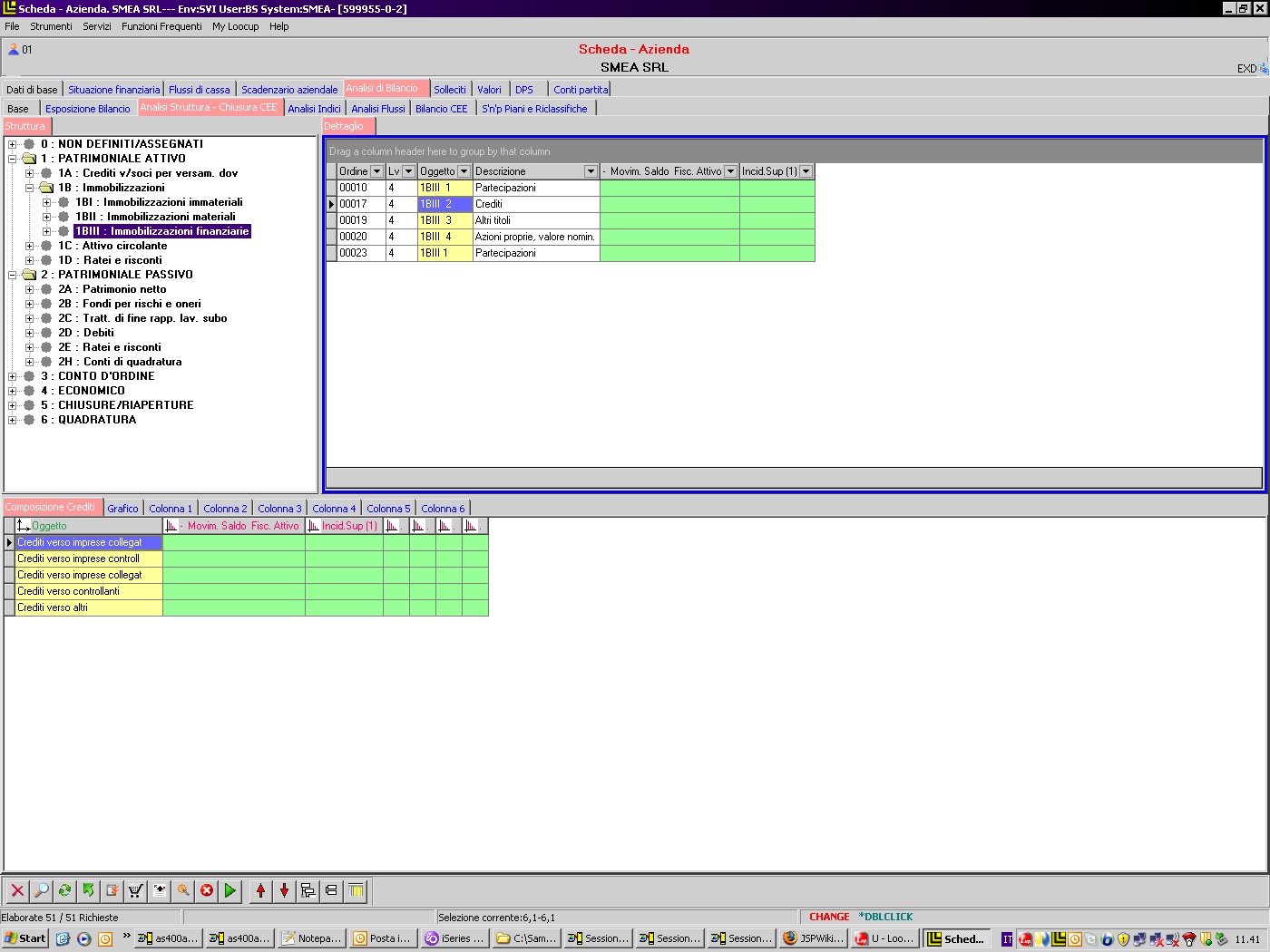 - Ispirata alla sezione "analisi struttura" scheda del bilancio contabile (scheda C5E010) con una sezione a sinistra con l'albero dei livelli del costo, a sinistra in alto apre matrice del livello successivo a quello su cui ho fatto click, sotto invece vedo la matrice del massimo dettaglio se faccio click su una riga della precedente matrice. Per accedere alla scheda: F04, CN/AZI/CodiceAzienda, Sezione Analisi di bilancio, nella sezione base seleziono una delle foto di bilancio esistenti, e poi posso vedere la sezione Analisi Struttura.